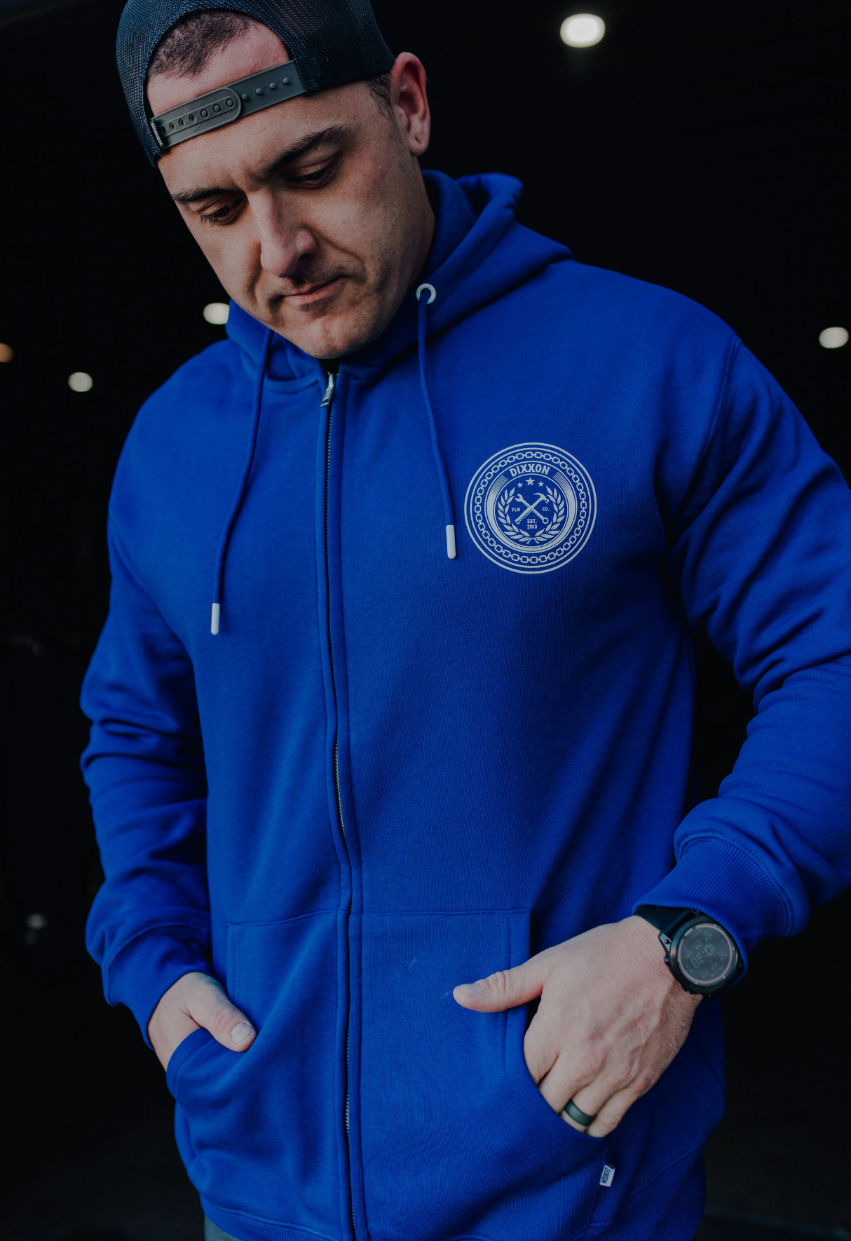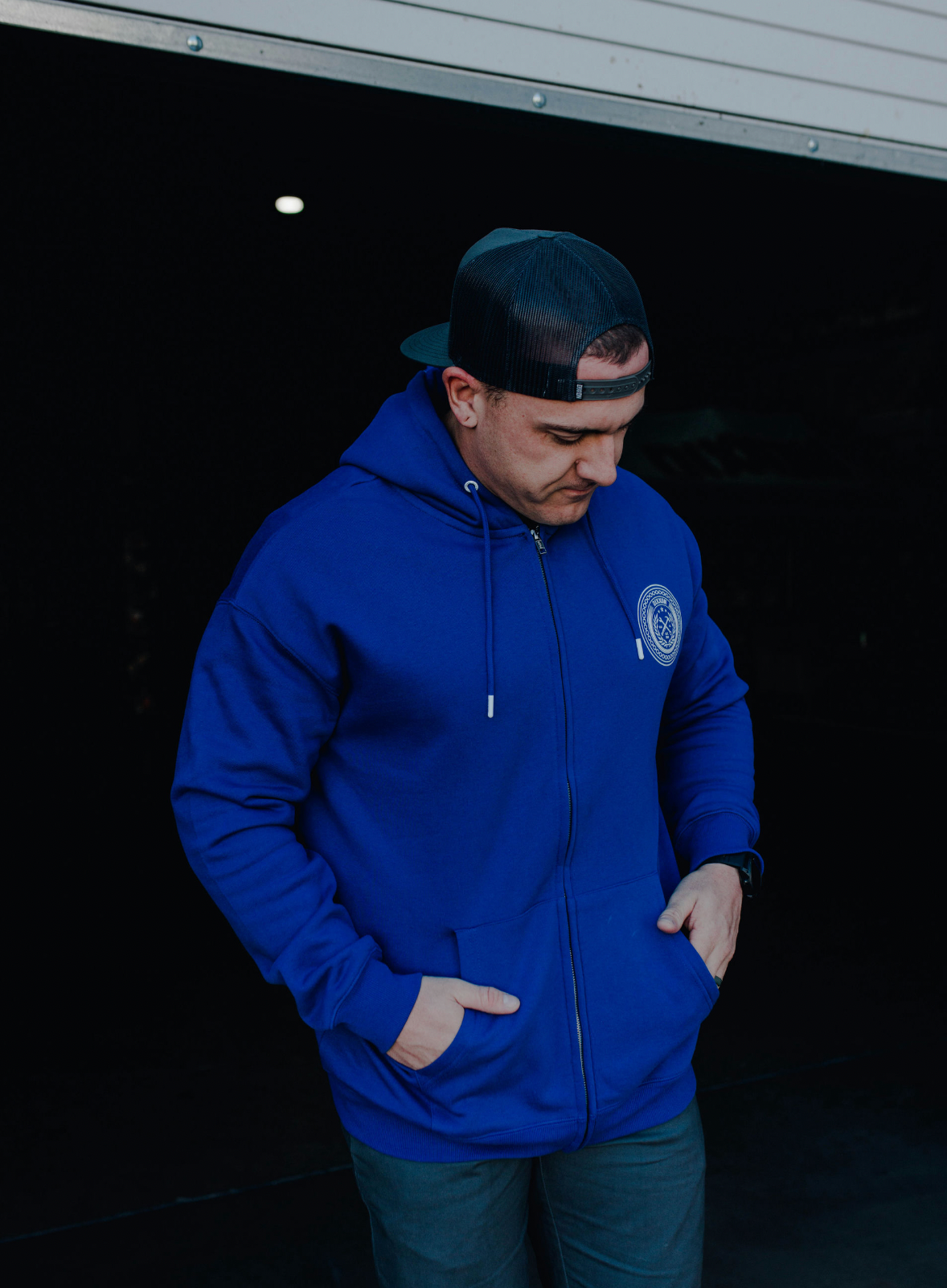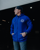 Chain Badge Zip Up Hood - White/Blue