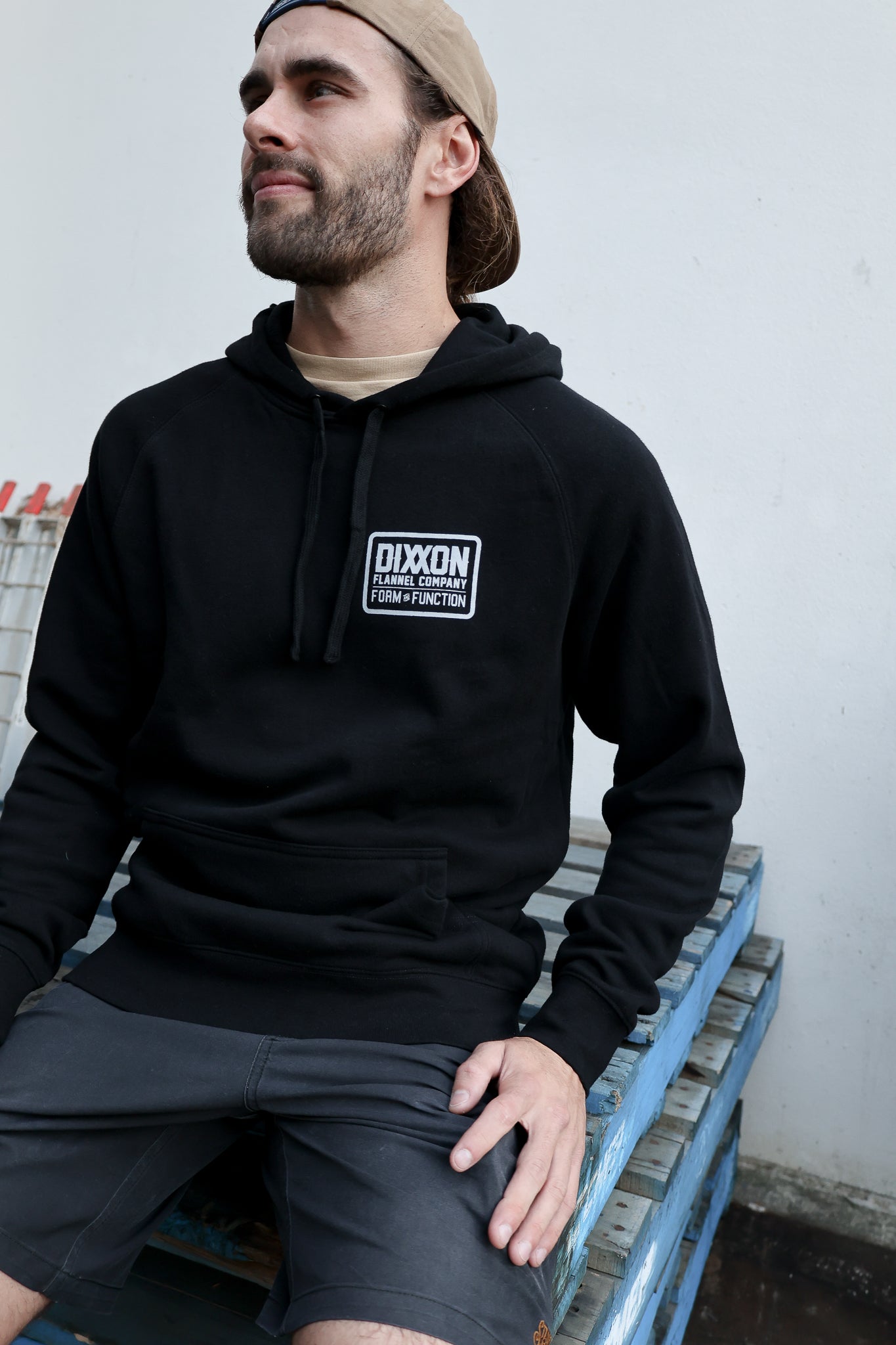 Pullover hood, raglan sleeves, kangaroo pocket, lined hood, tonal drawcord