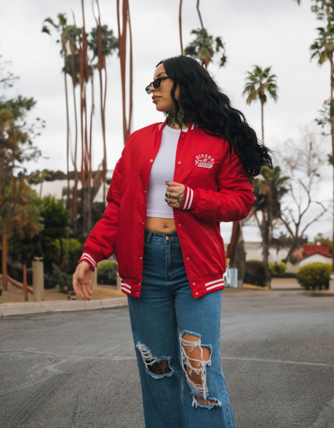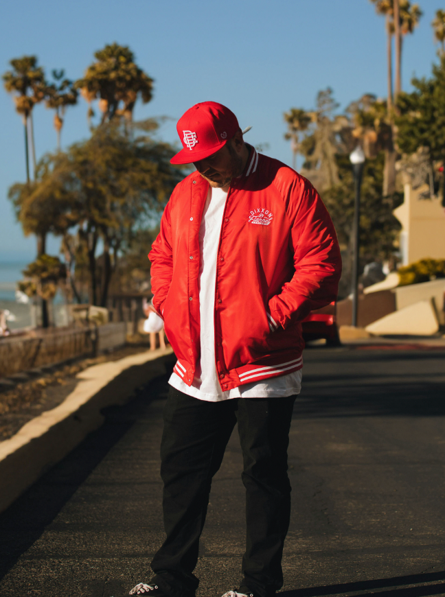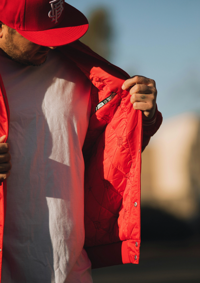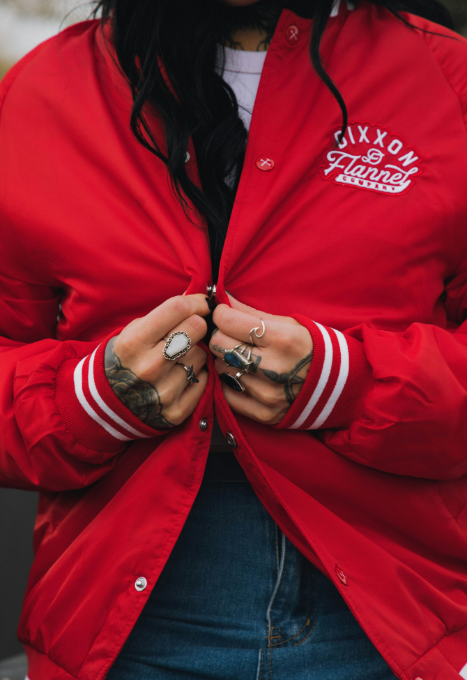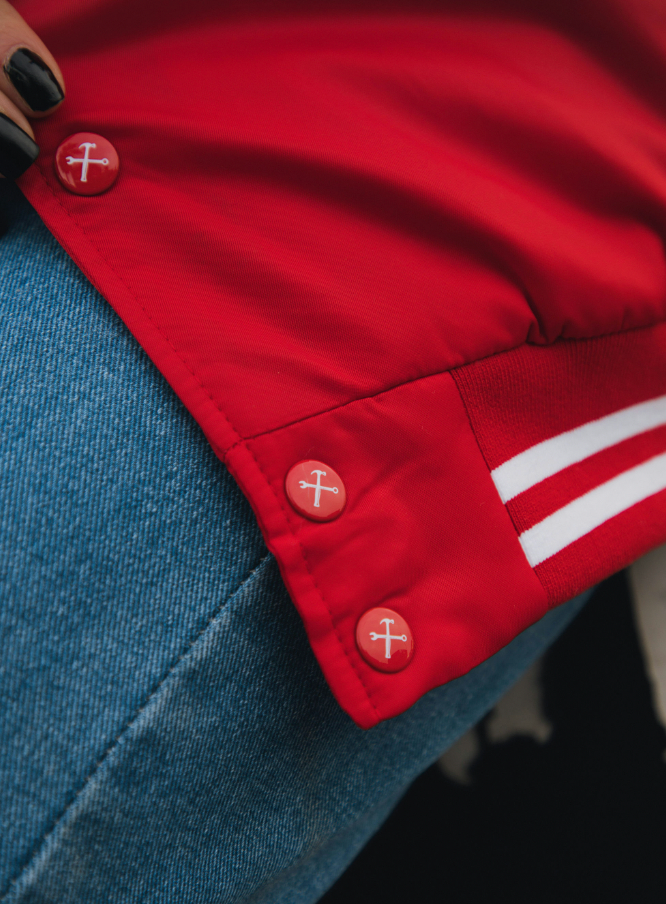 Pastime Nylon Varsity Jacket - Red