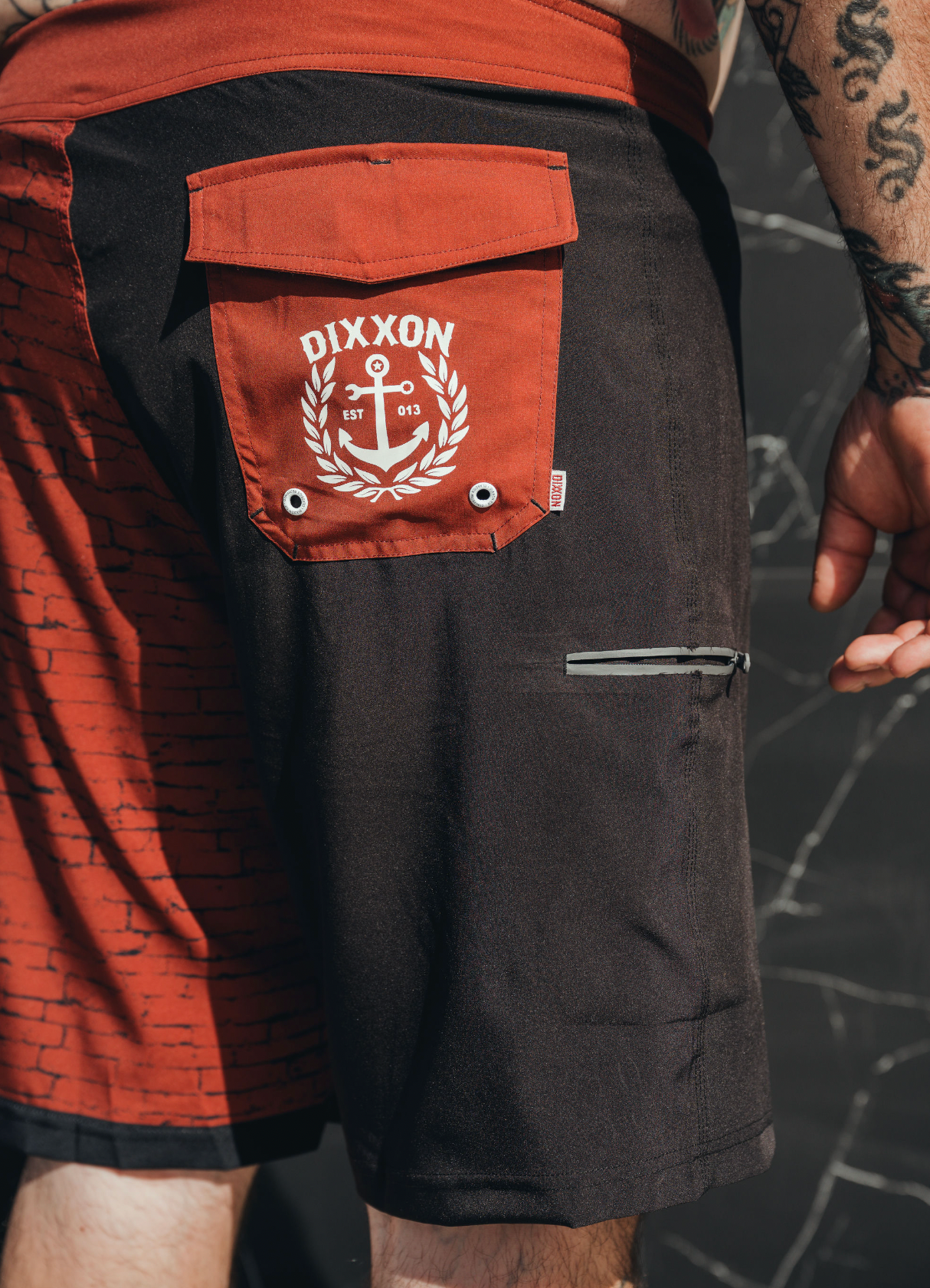 Rock that beach-ready style the next time you hit your local watering hole with the Break Boardshorts. Balancing form and function, these breathable, lightweight trunks are custom built from the ground up and designed to take you from the surf to the shore and beyond. Made from a quick drying fabric, the Beware' boasts a 21” outseam and a net stretch fly with a laced front closure. Finished with a heat seamed side zipper pocket and a rear Velcro pocket that features a handy key keeper, these shorts are perfect for all your needs in and out of the water.