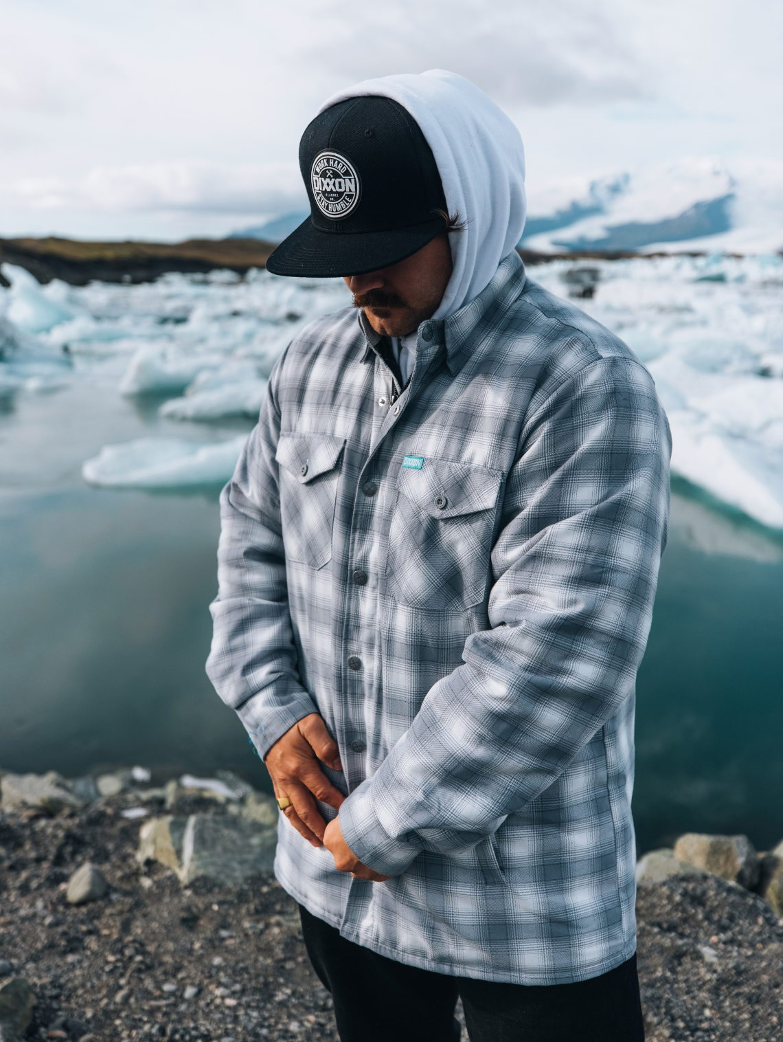 - Dixxon brand tag on the left chest pocket