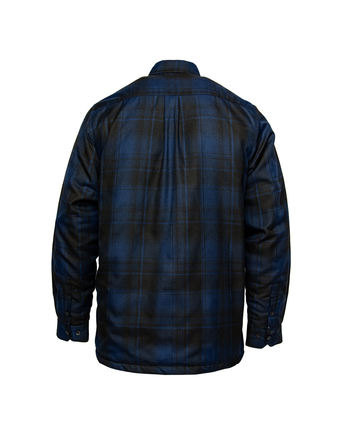 - Men's blue and black plaid patterned flannel jacket