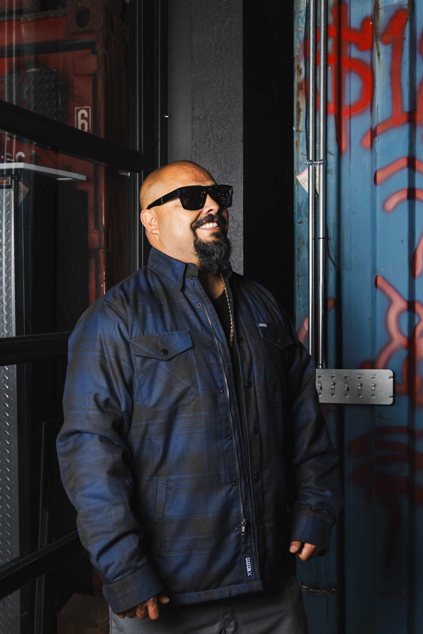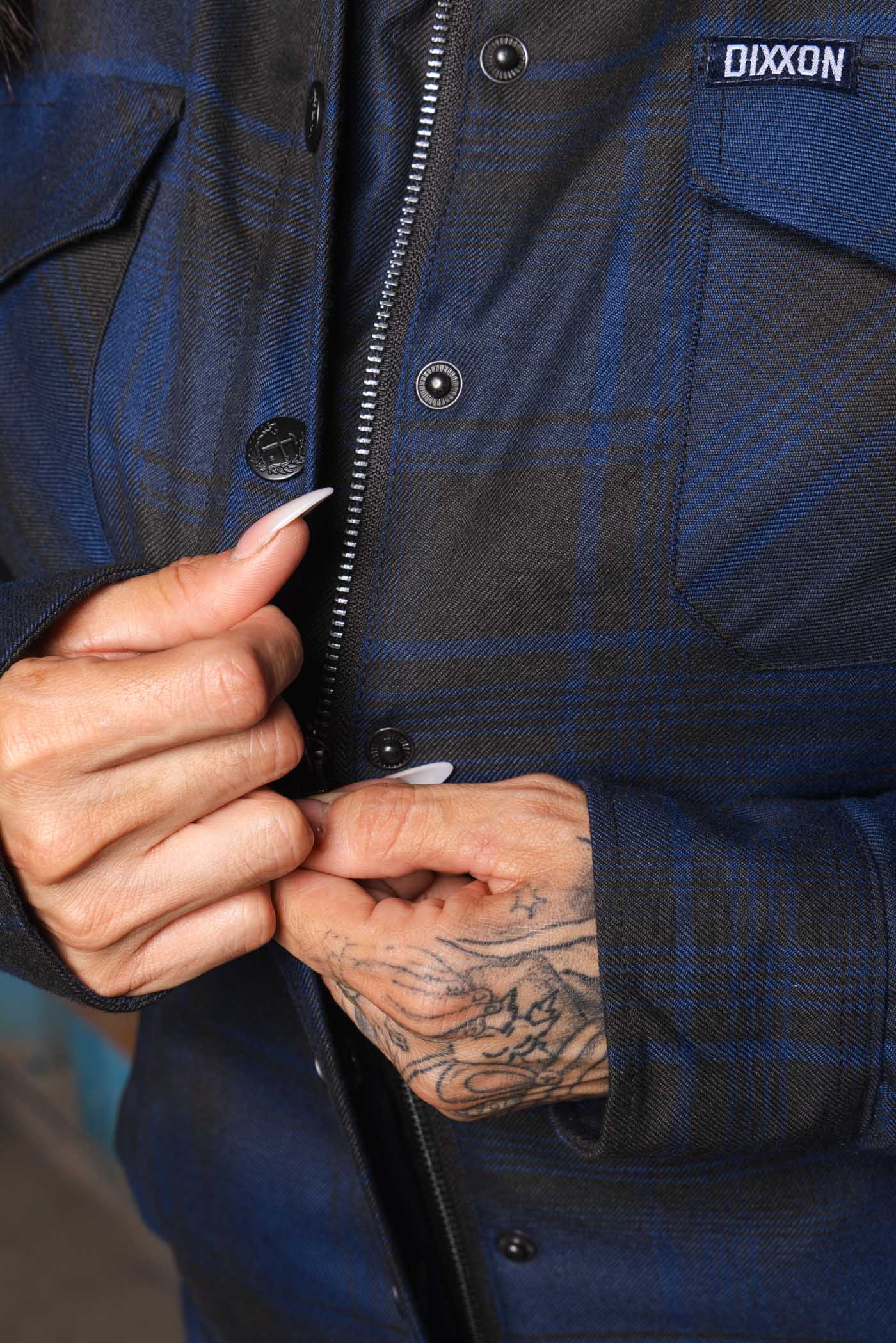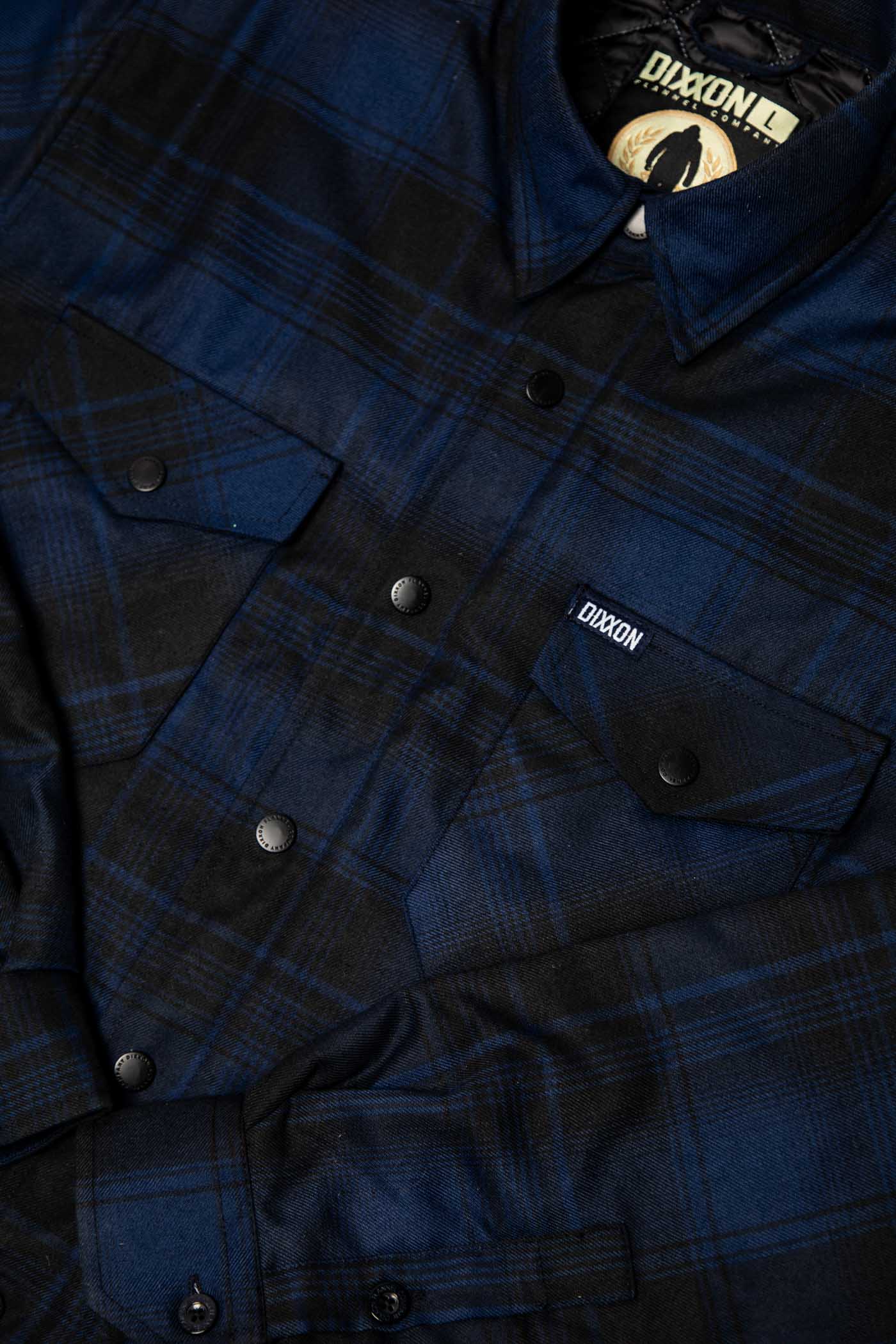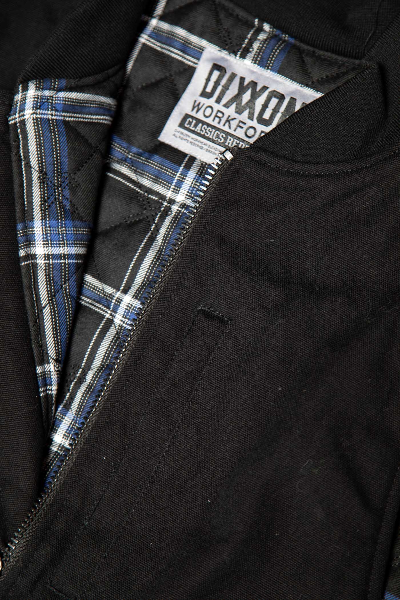 - Dixxon brand tag on the left chest pocket