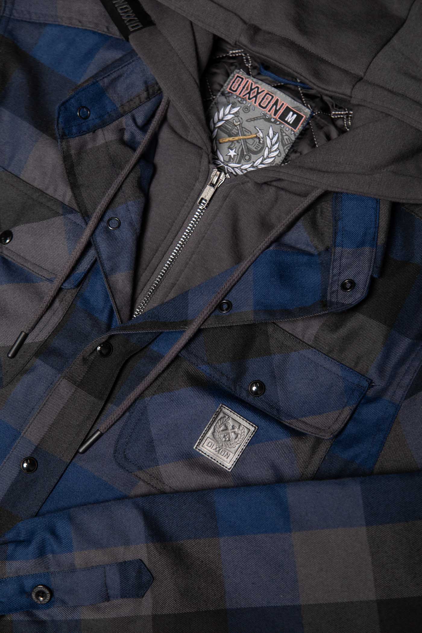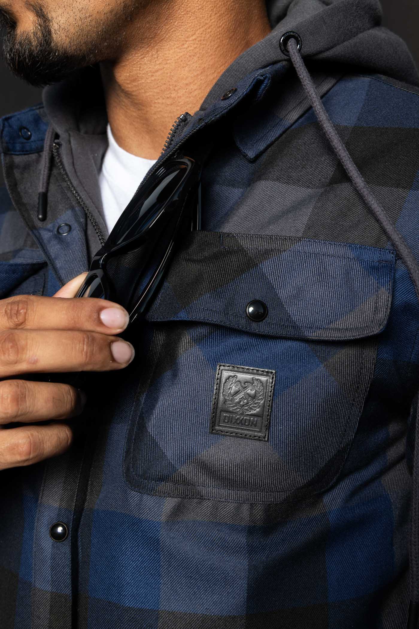 - Dixxon brand tag on the left chest pocket