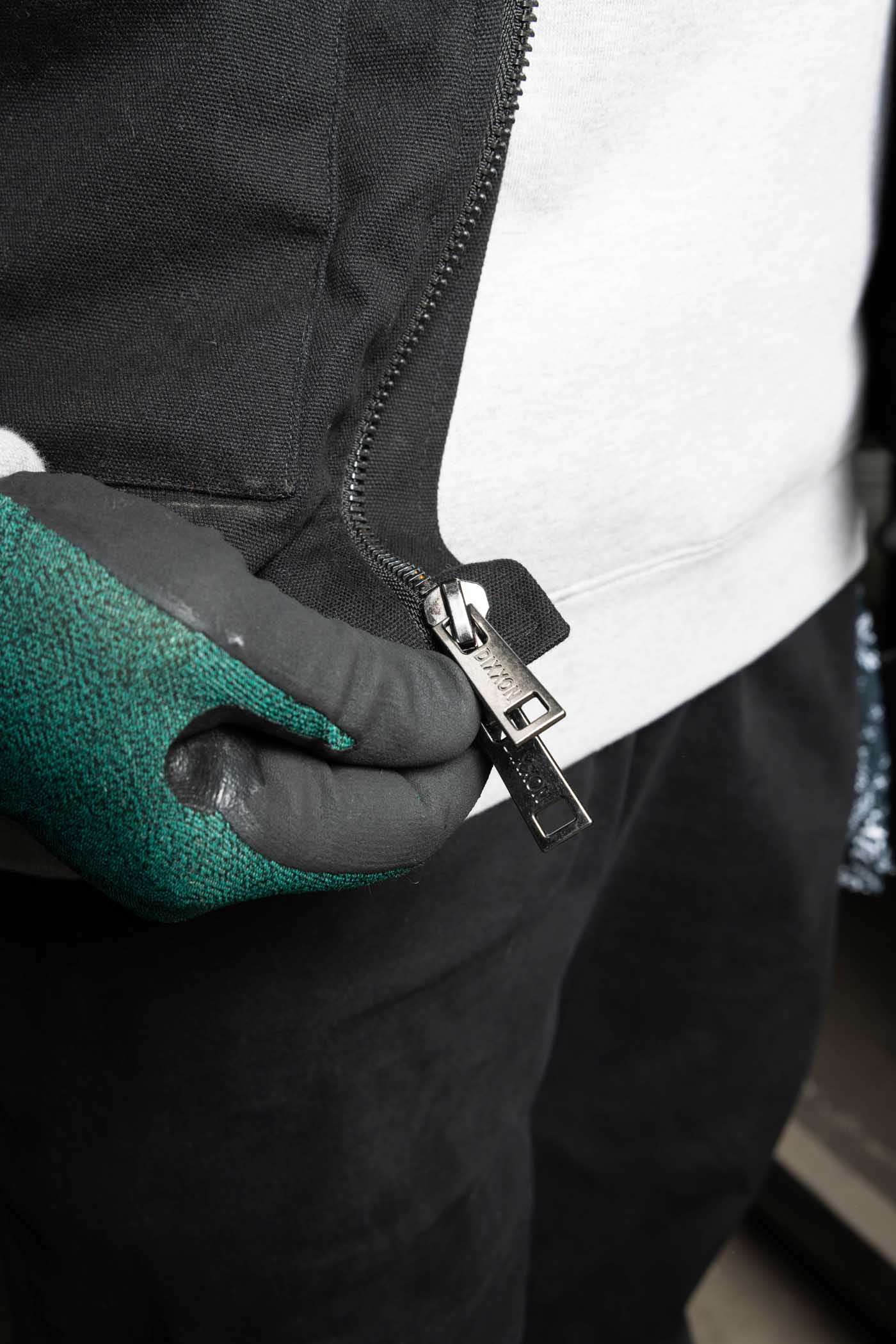 - Fabric flap over zipper for a cleaner look and reduced draft