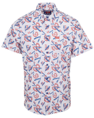 - Men’s woven, short sleeve button up party shirt