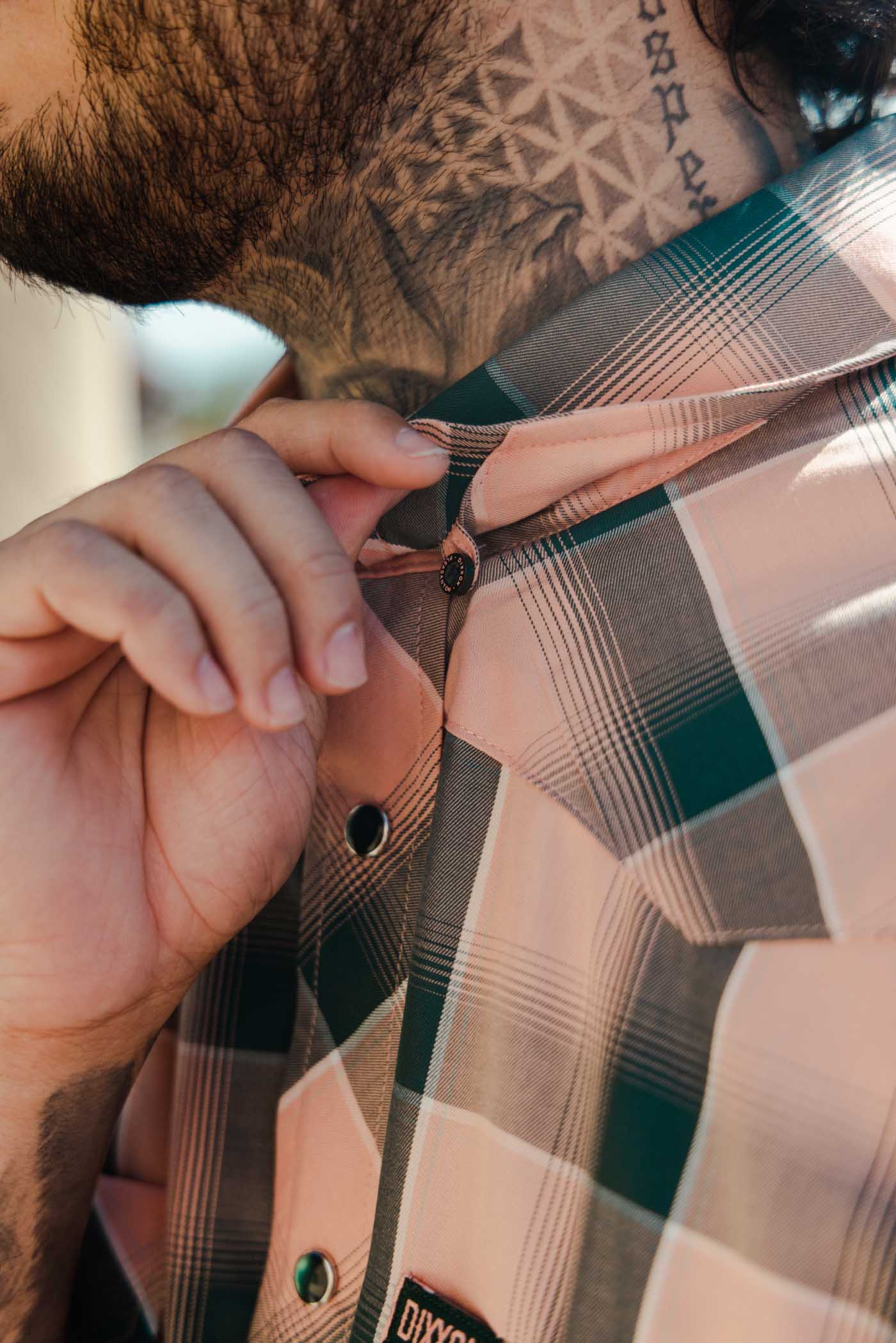Dixxon is a traditional American cut of garment so will fit on the larger side. If you want a more fitted shirt please run a size down.