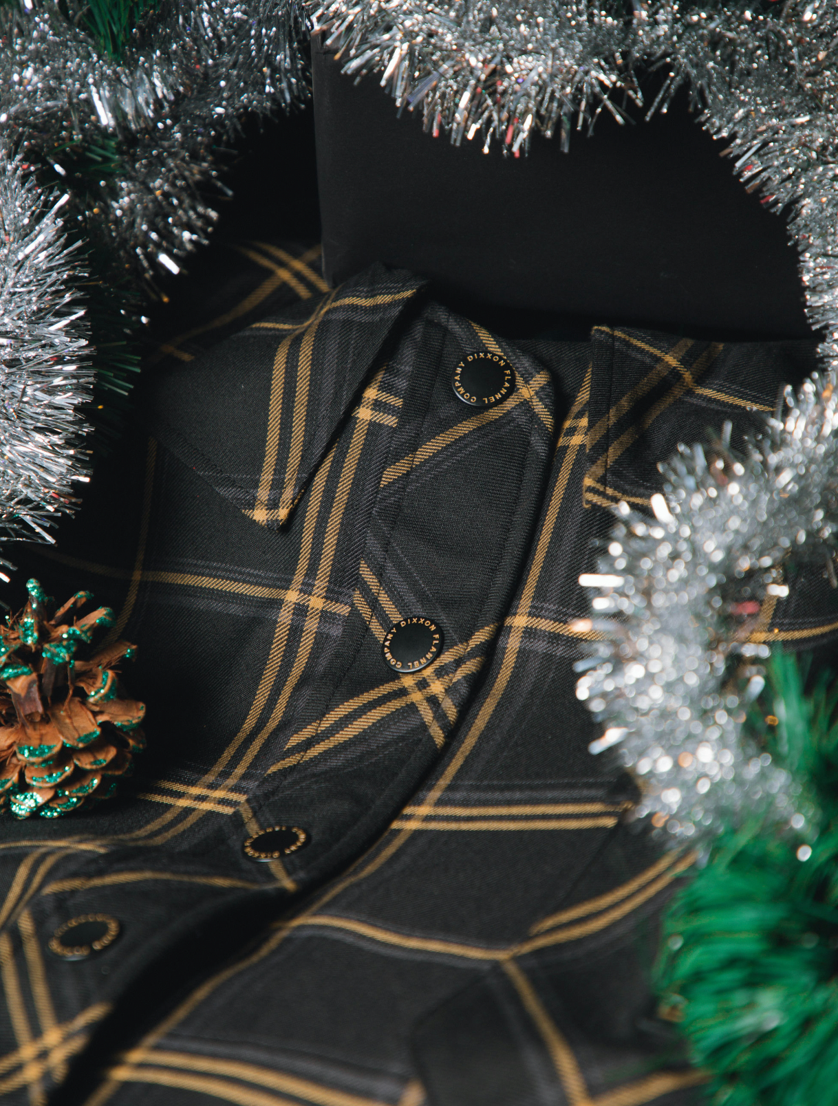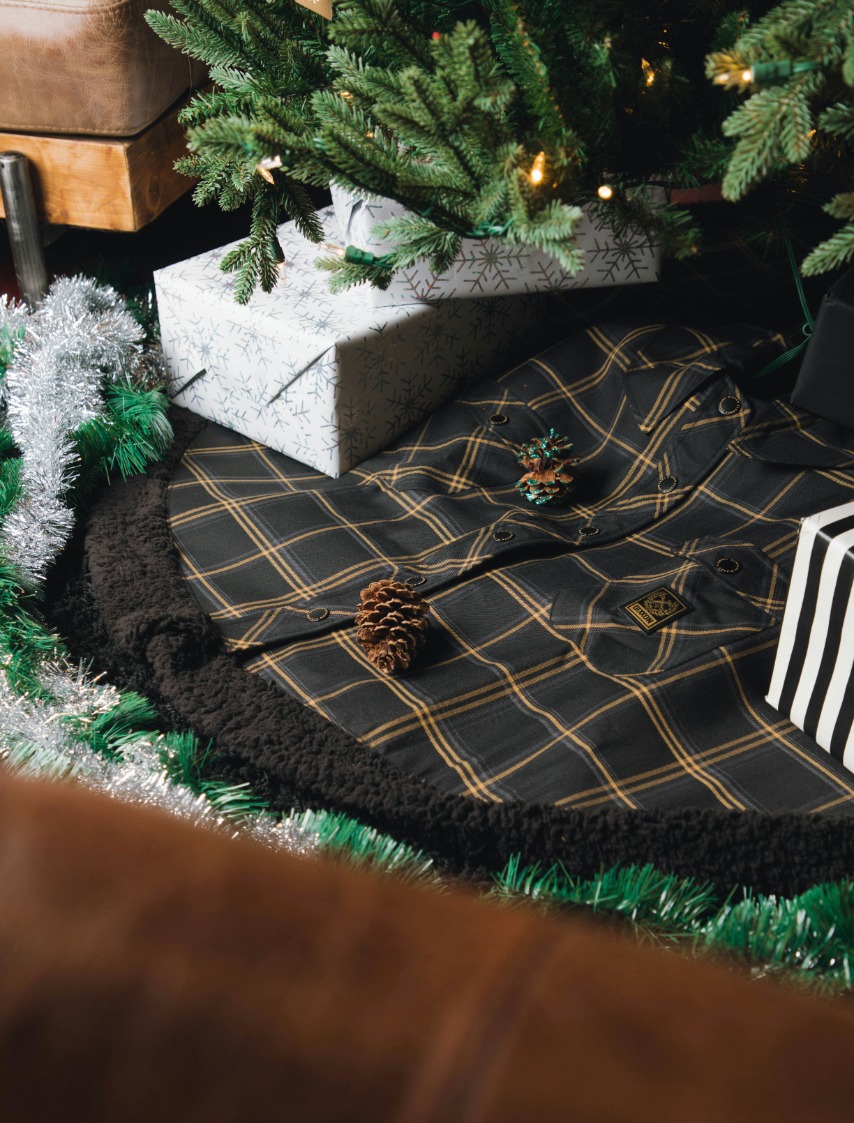 Deck the tree with signature Dixxon flair! The Tinsel tree skirt is waiting to warm up your tree in true flannel fashion. Modeled after our award winning flannels and done the Dixxon way.