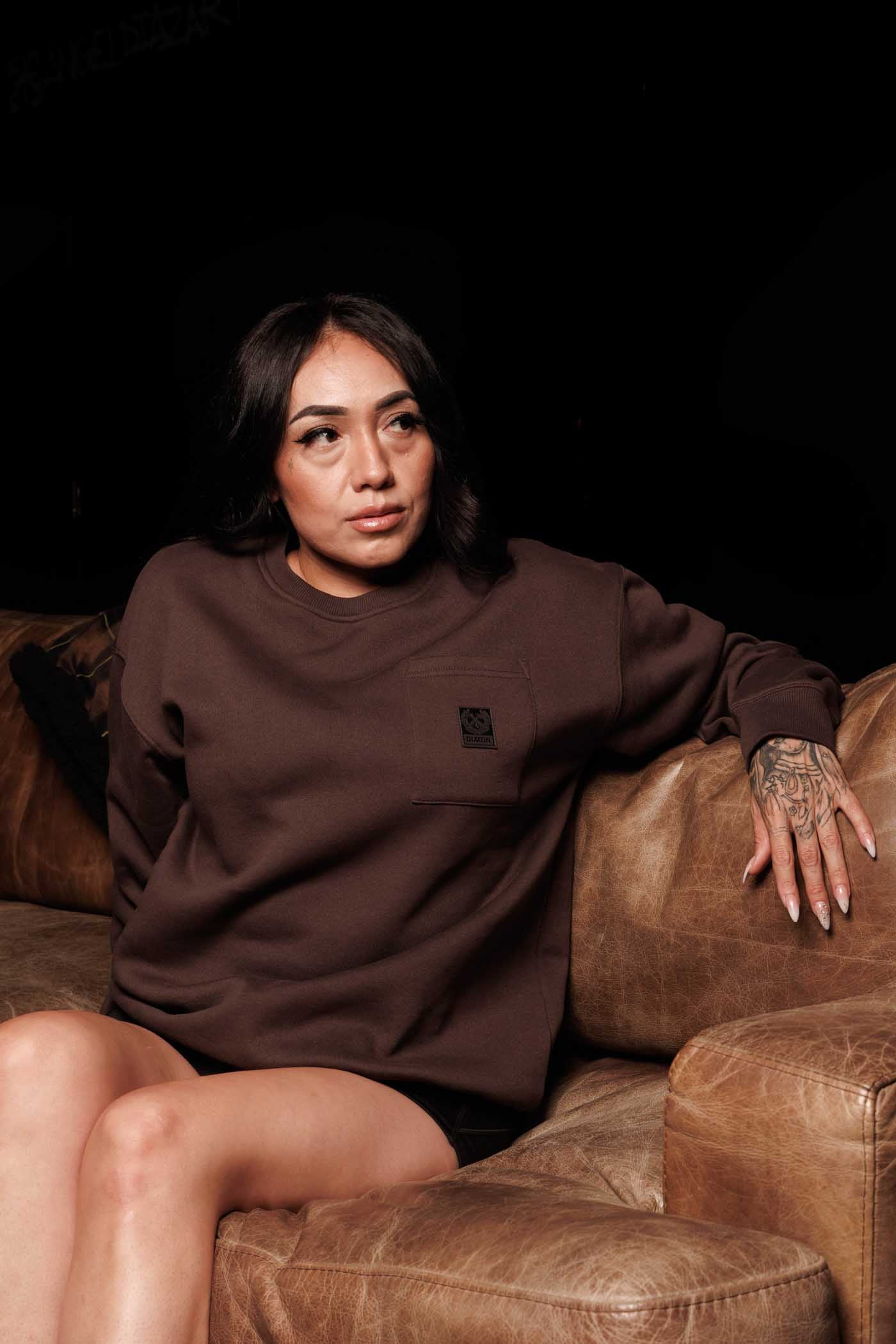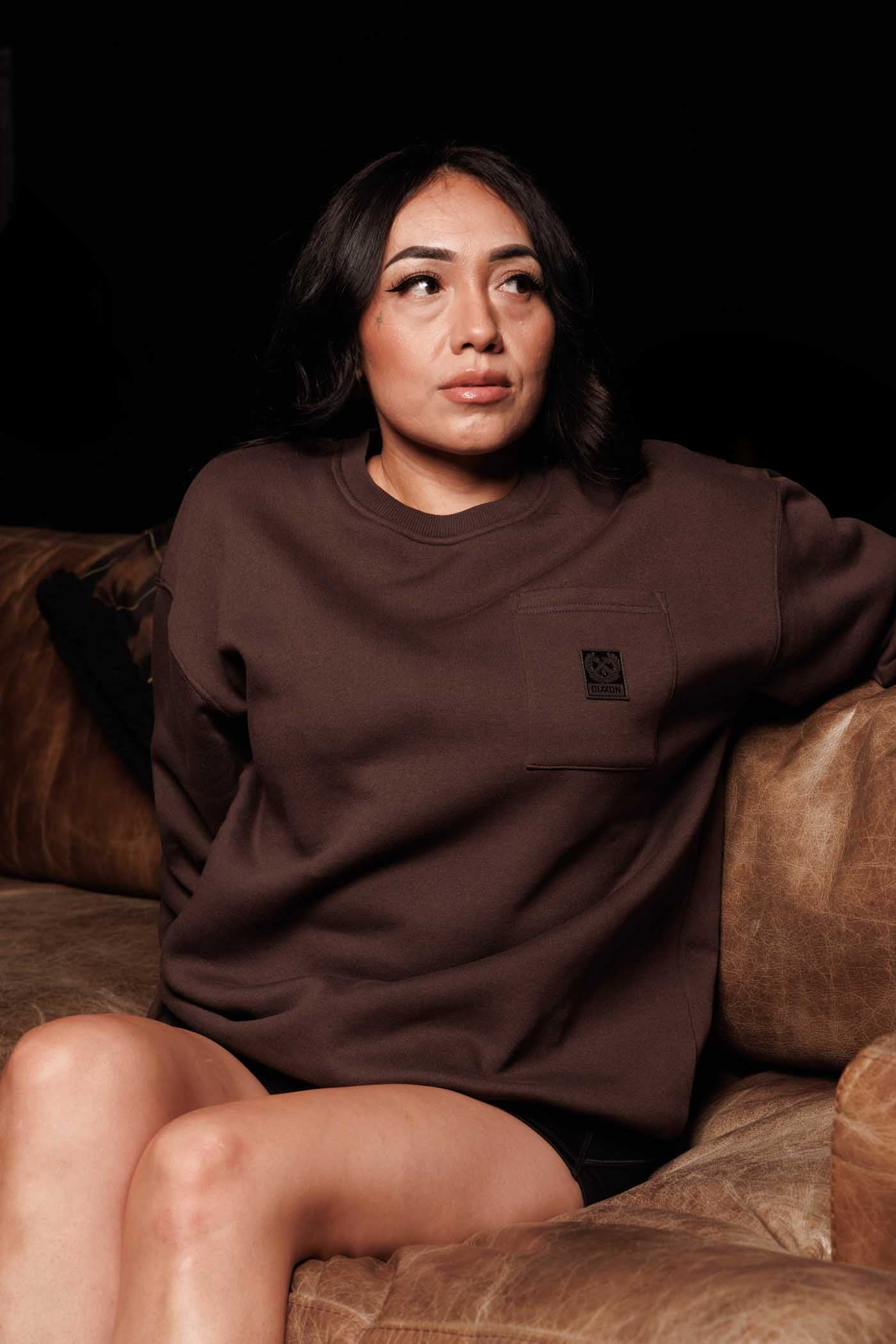 Womens Pocket Crewneck - Brown