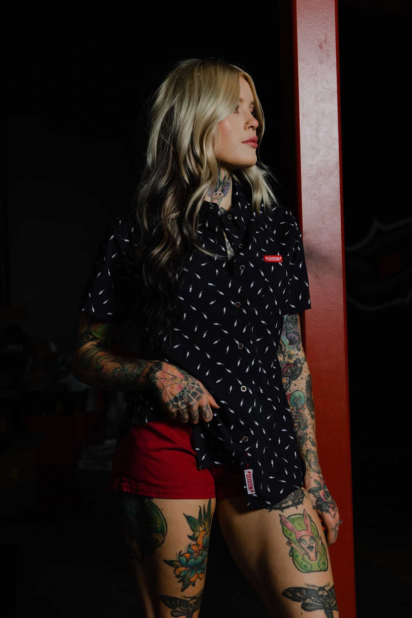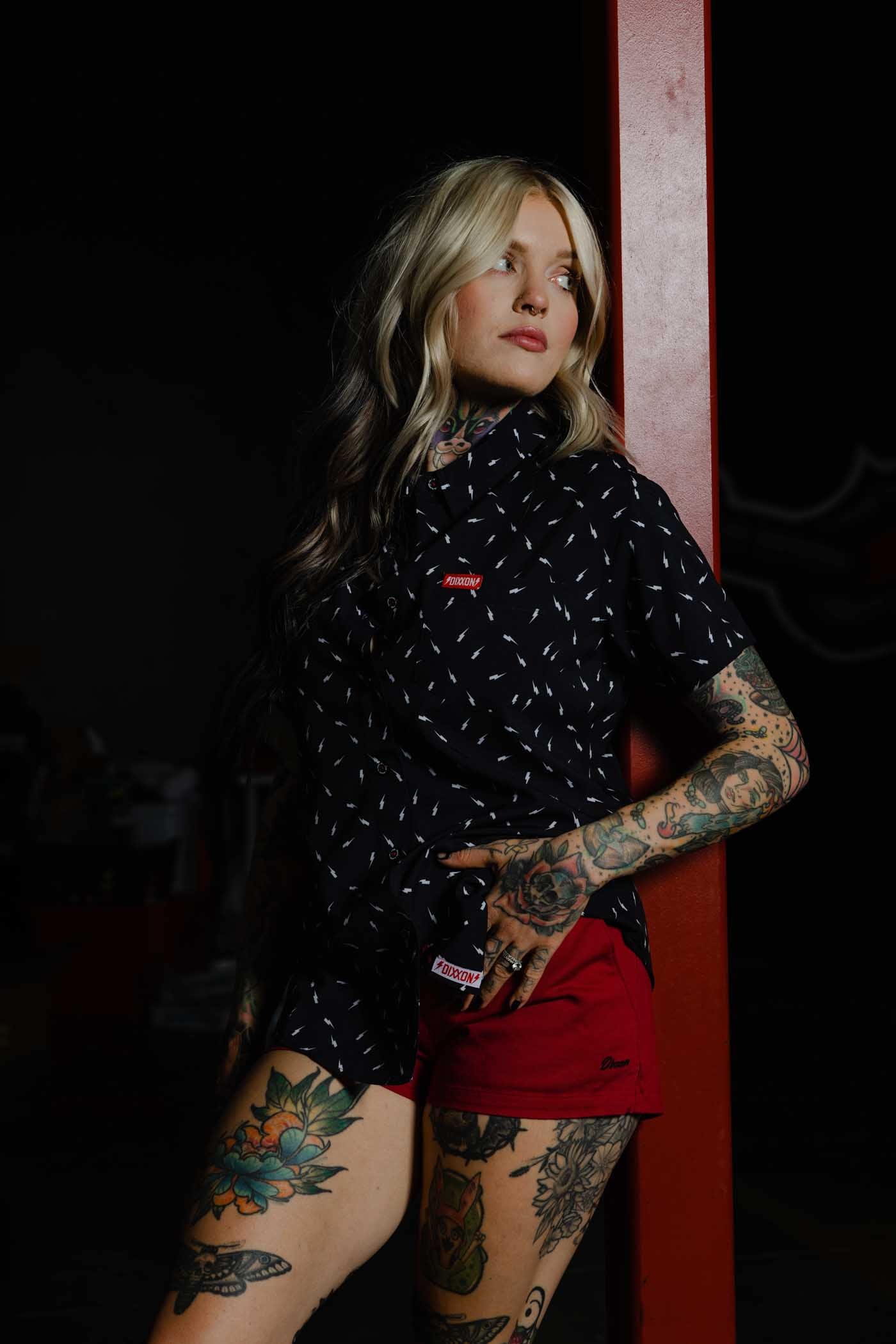 Bolt Women's Short Sleeve Party Shirt - White/Black
