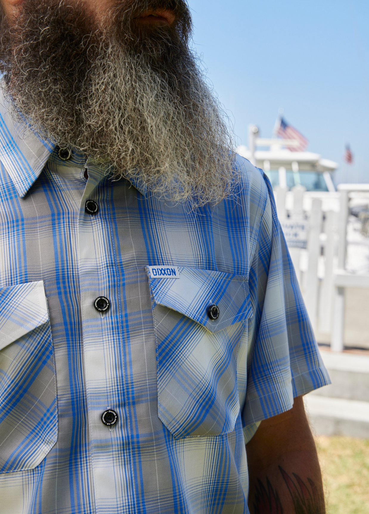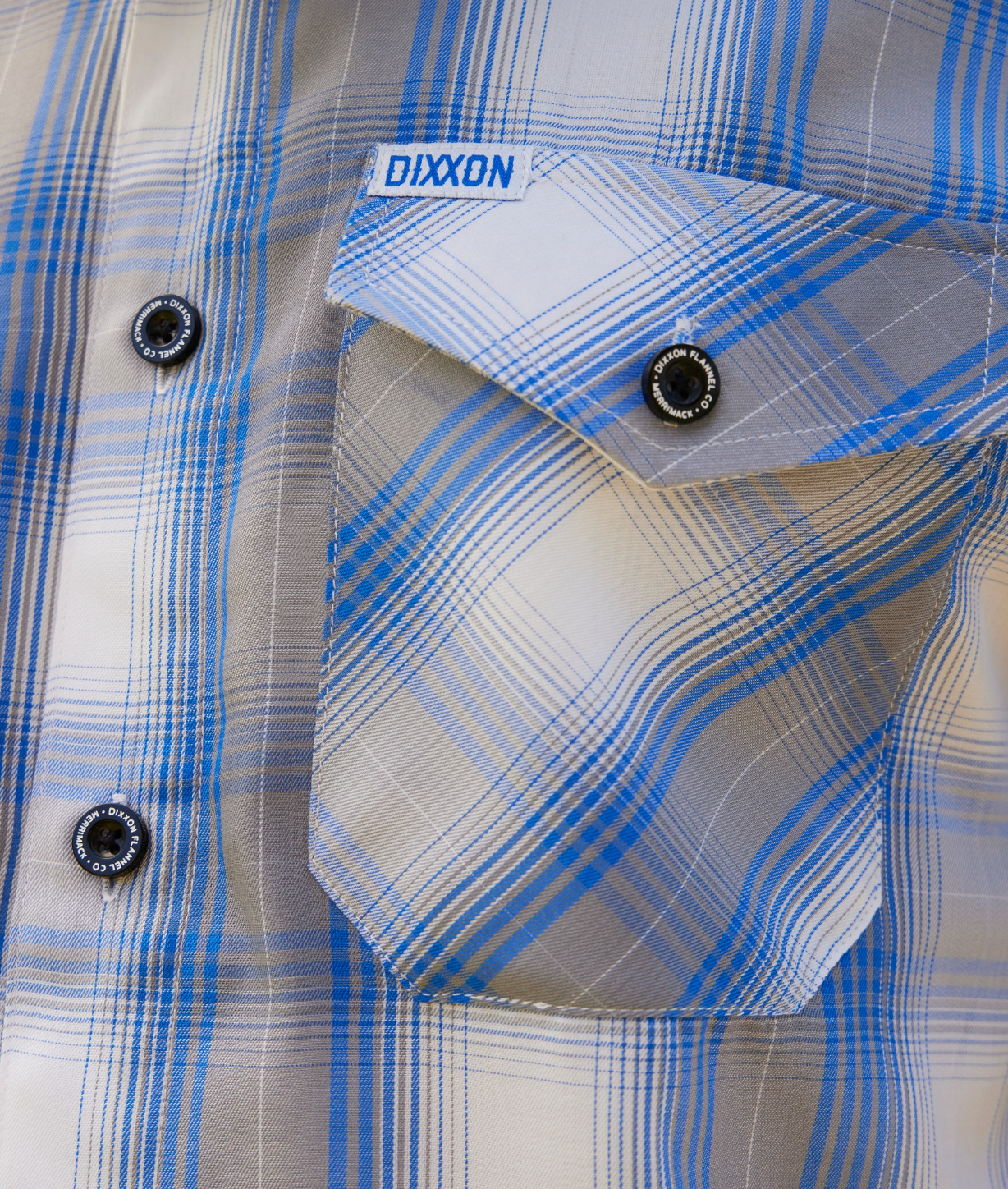 • Dixxon brand tag on the left chest pocket