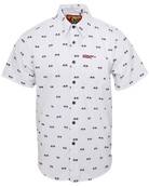 - Men’s woven, short sleeve button up party shirt