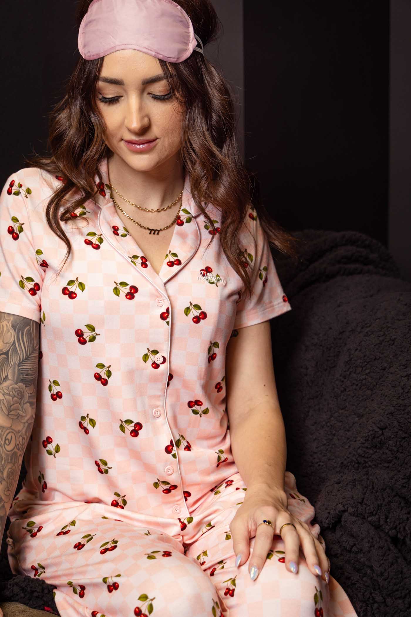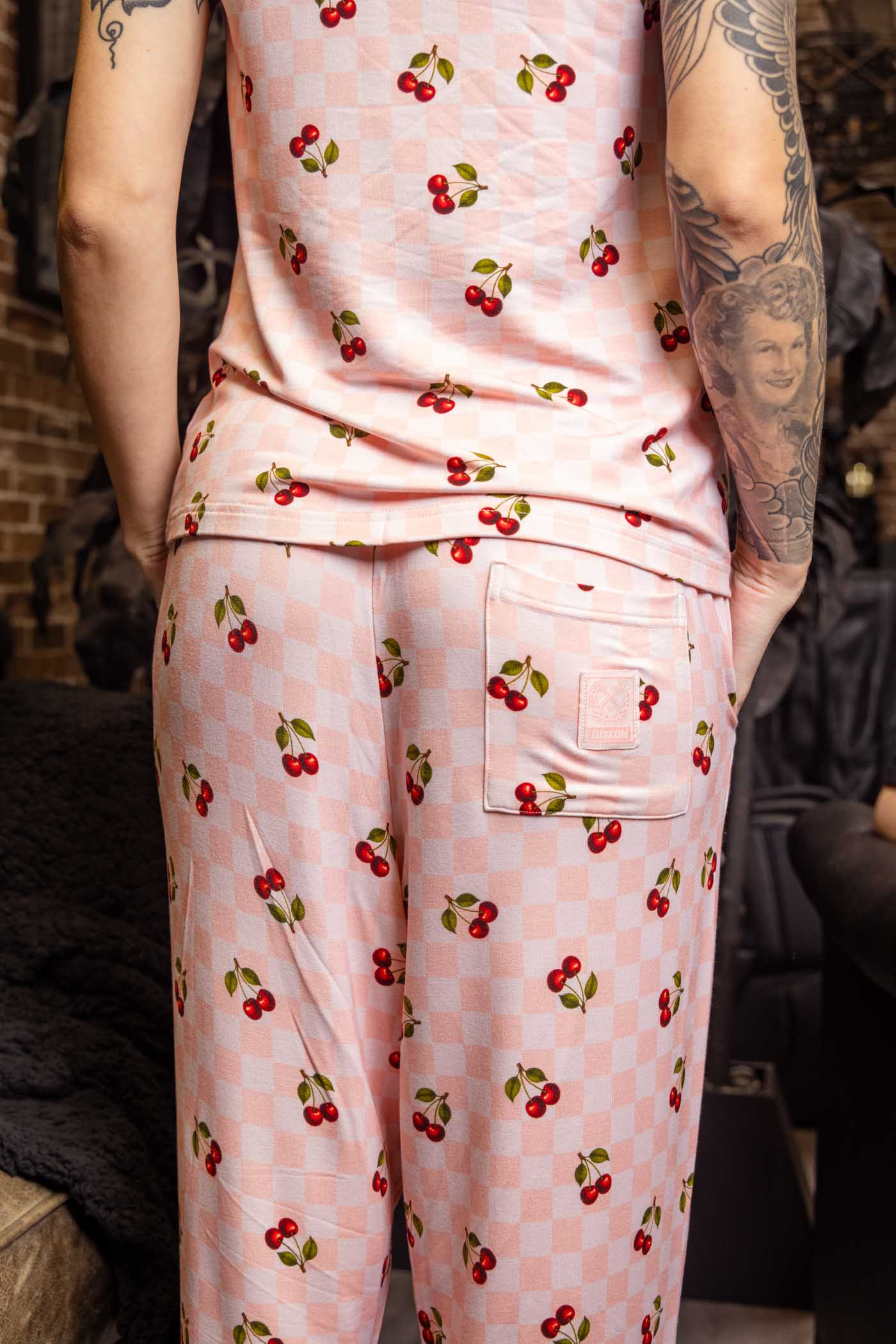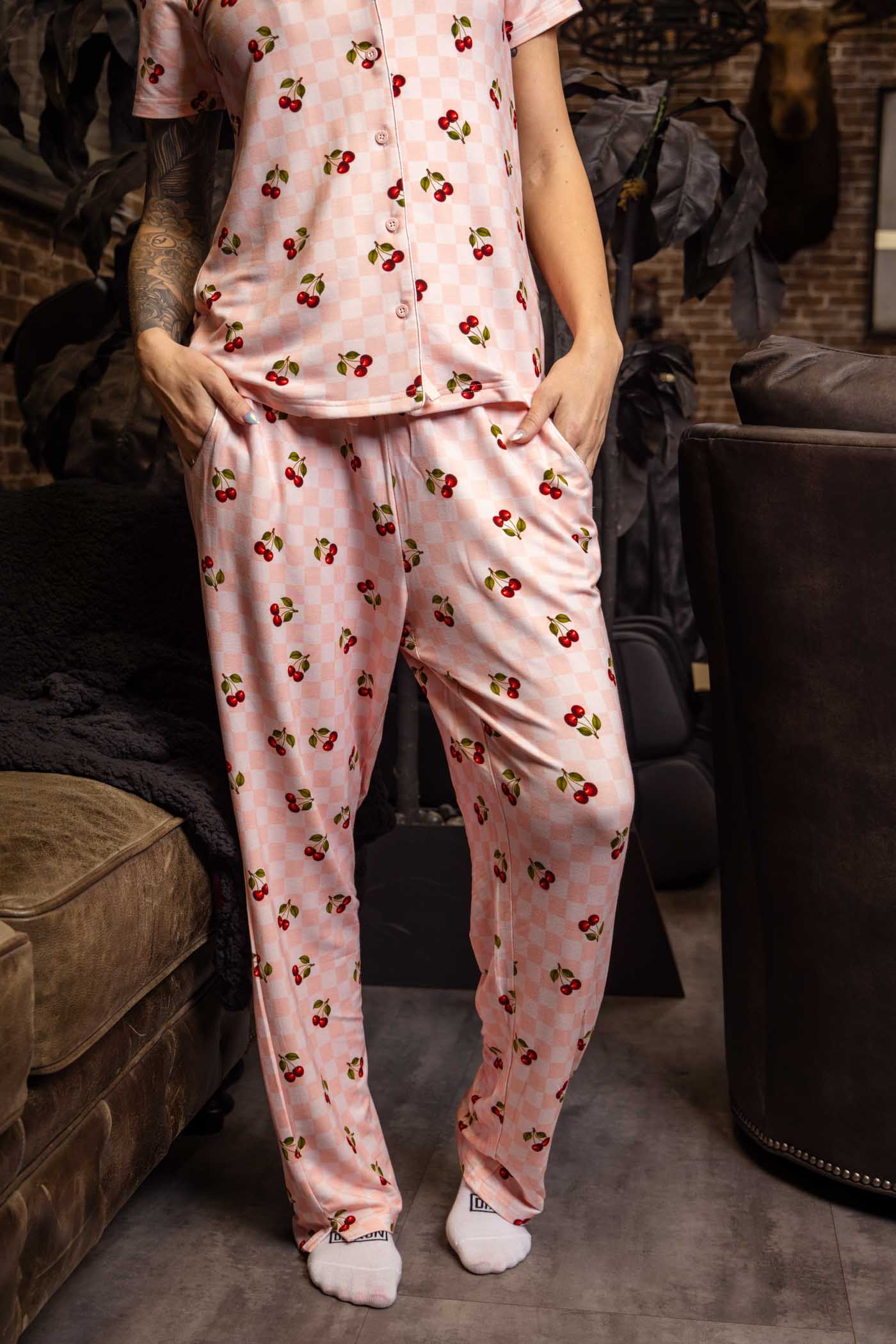 Women's Pink Checkered & Cherry Pajama Pants