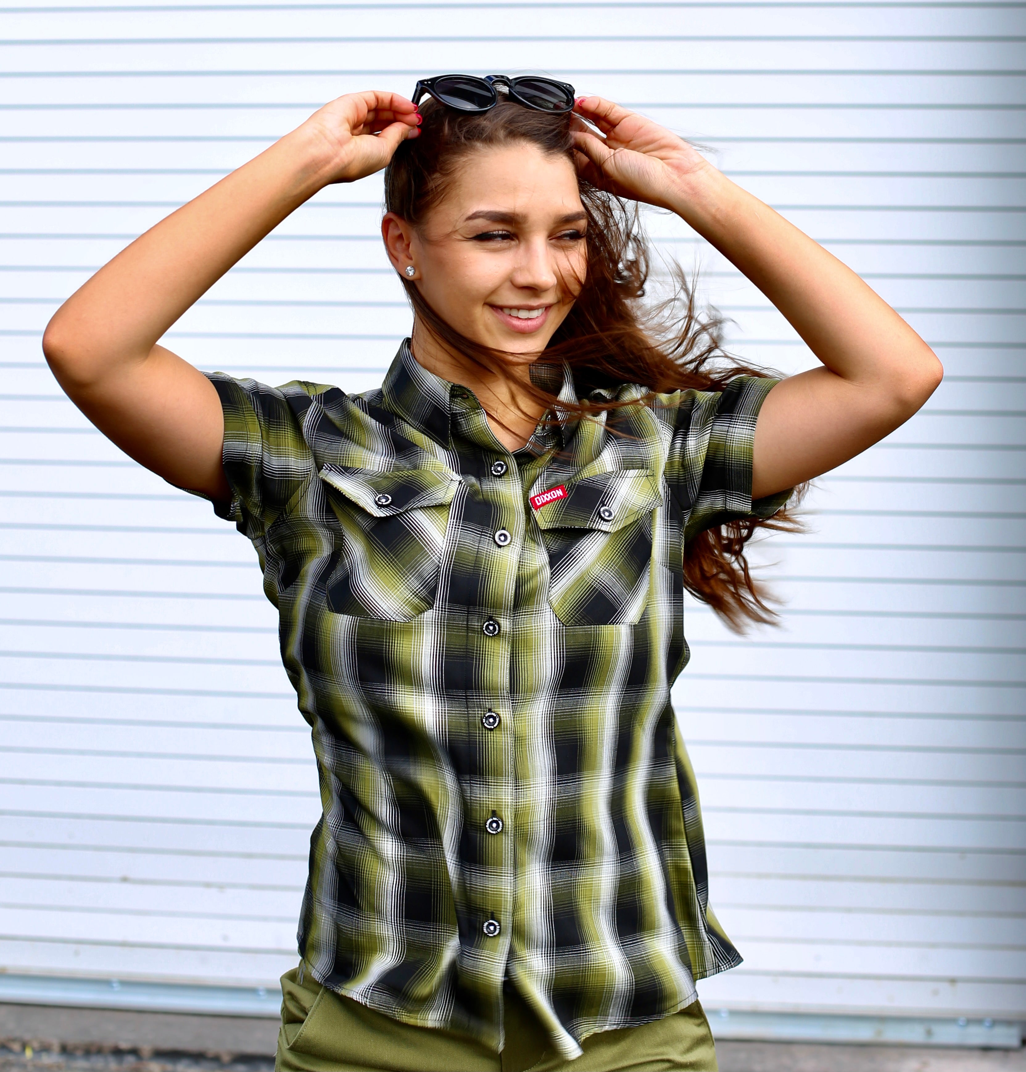 • Women’s plaid patterned short sleeve bamboo shirt