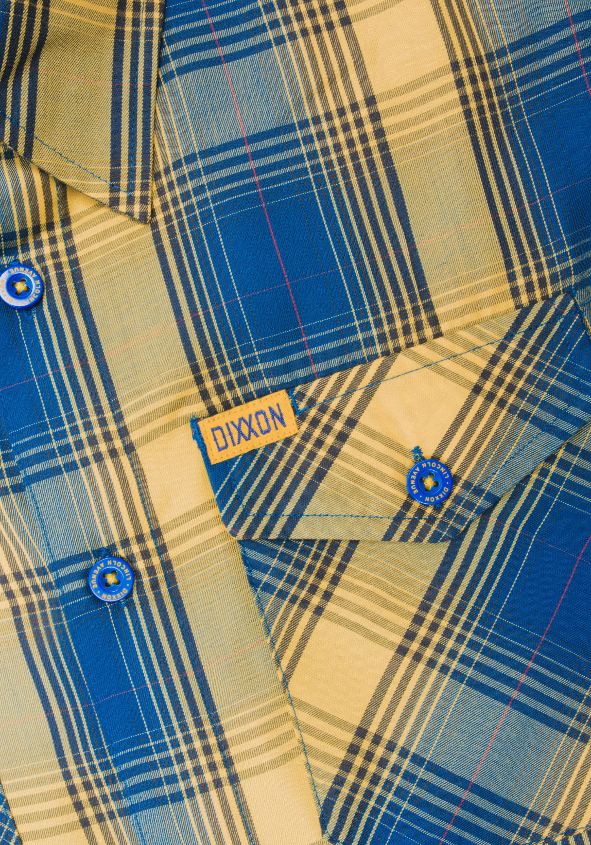 - Dixxon brand tag on the left chest pocket