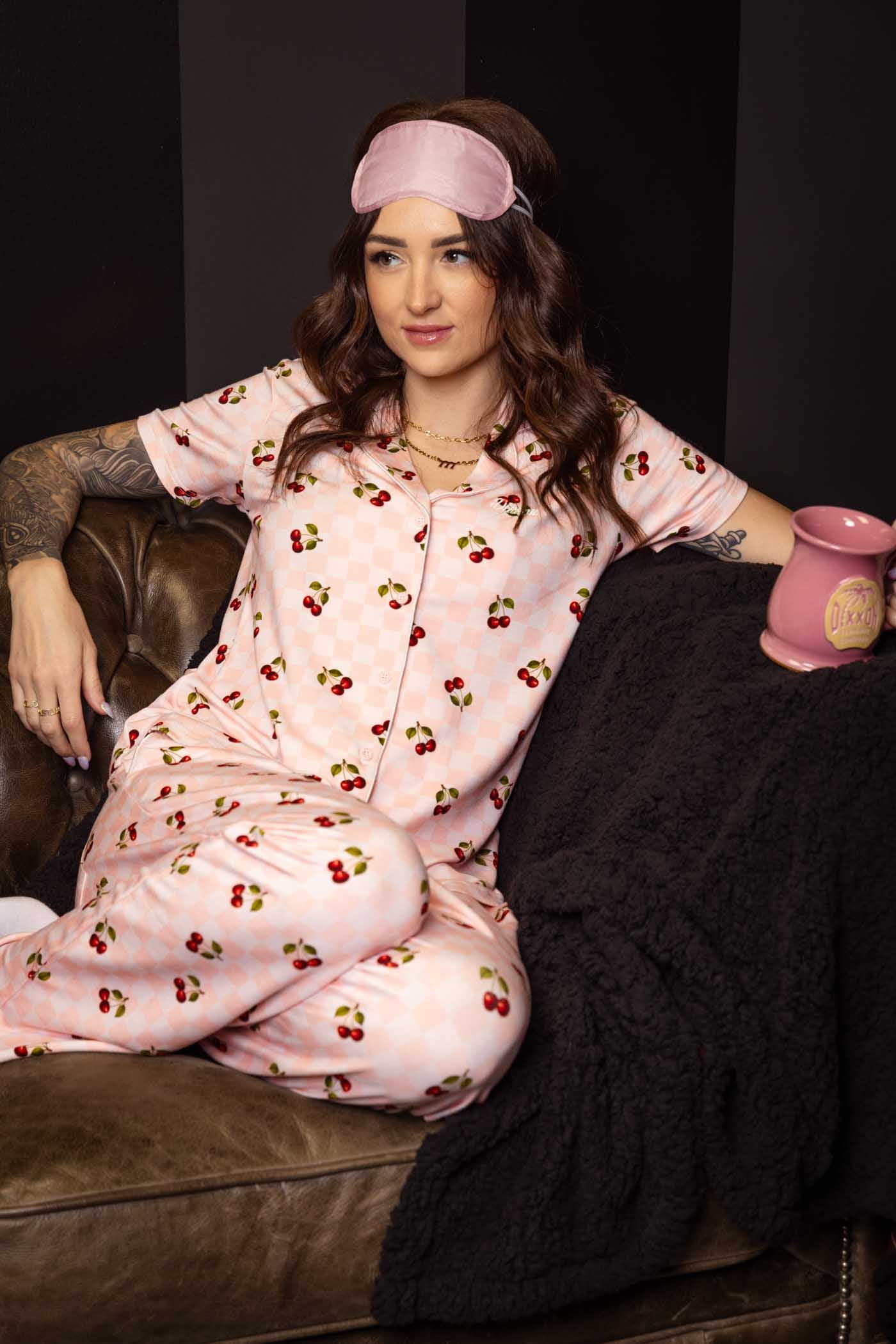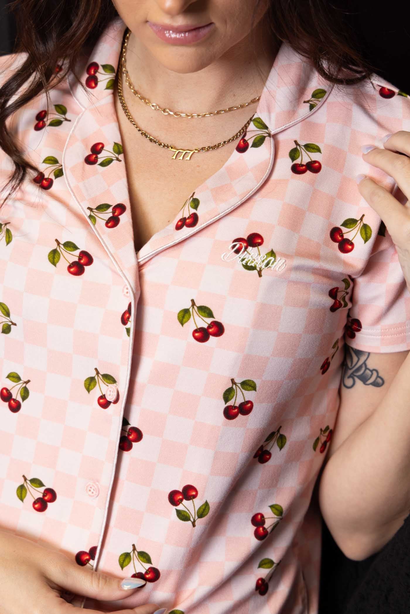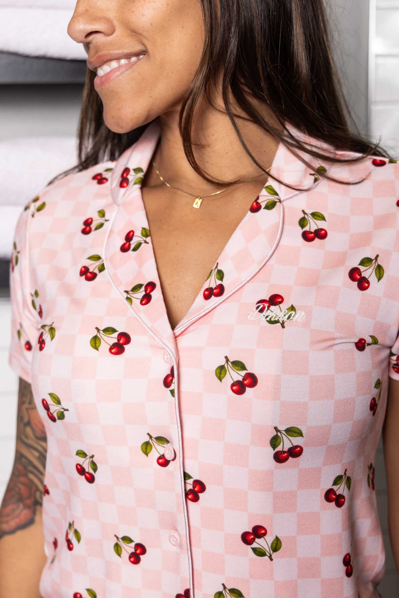 Women's Pink Checkered & Cherrys Pajama Shirt