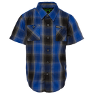 - Kid’s blue, black, and gray plaid patterned short sleeve bamboo shirt
